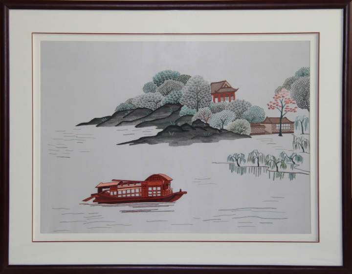 京绣《红船》出自我省保定市定兴县的国家级非物质文化遗产代表性项目京绣国家级代表性传承人梁淑平之手。“红船”是中国革命源头的象征。该作品以绣制“红船”来传承党的红色基因,旨在发扬红色精神和弘扬红色文化。此件京绣作品由手工绣制而成,以真丝面料为底料,以蚕丝线绣制图案,精致美观。