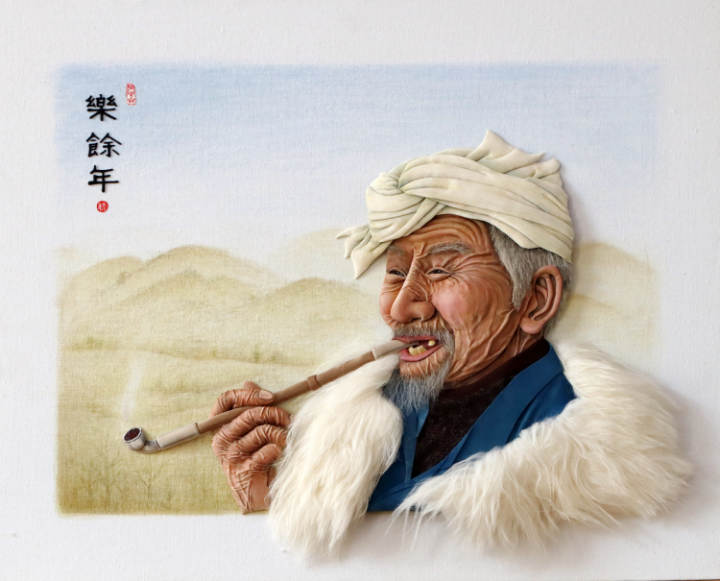 布糊画《乐余年》为国家级非物质文化遗产代表性项目布糊画市级代表性传承人郝如香的作品。该作品塑造了一个纯朴憨厚的农民形象,旨在表达在中国共产党坚强领导下,广大农民群众脱贫致富奔小康后“听党话、感党恩、跟党走”的强烈心声。