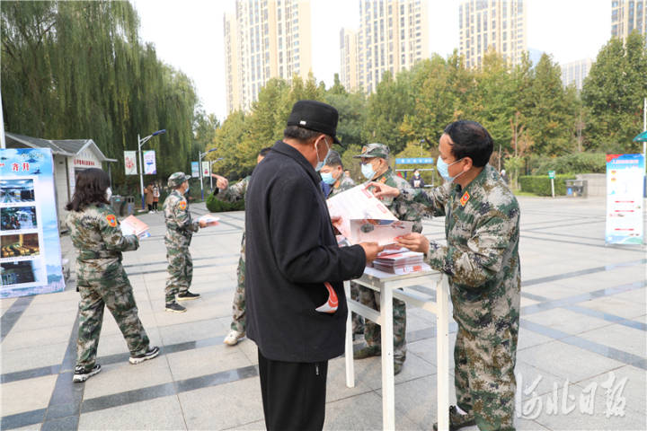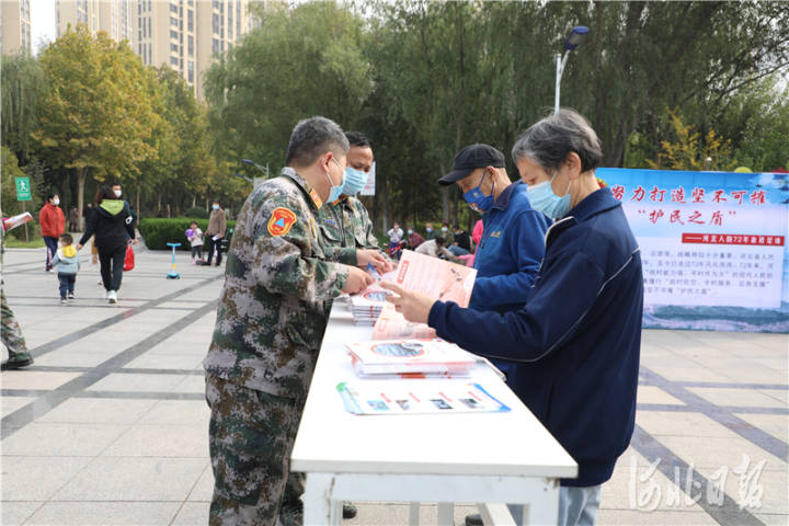 10月30日上午,河北省人防办“学习宣传贯彻党的二十大精神,开创河北人防新未来”宣传活动在石家庄市民防公园举行。图为省人防办工作人员向过往群众发放解读党的二十大精神的辅导读物、人防科普读本、人防宣传折页等资料。 张晓晴摄