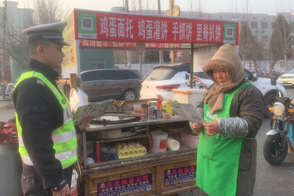 民警“逛”集市 现场讲安全