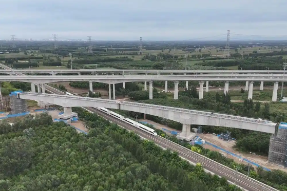 雄商高铁雄安枢纽跨津保铁路转体桥成功转体