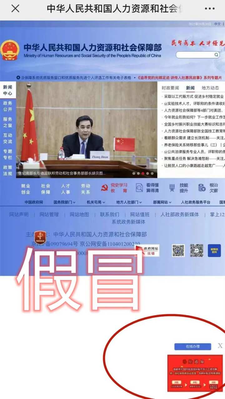 甚至假冒人社部网站