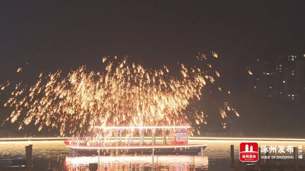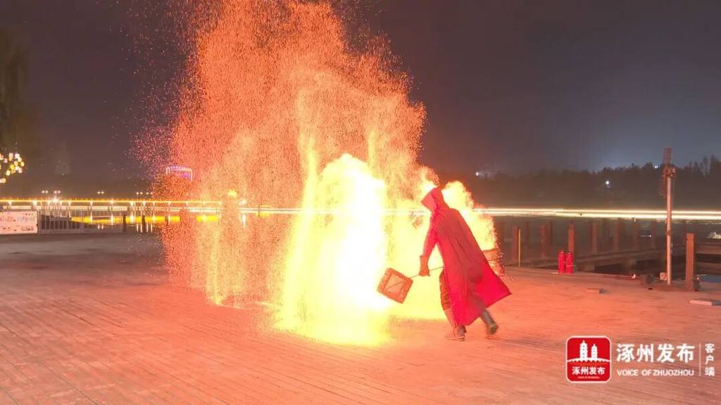 灯市的节目演绎的也全面升级,实现了传统非遗与现代演艺的巧妙融合。非遗项目“火壶表演”惊险奇绝,表演者将盛有热炭的火壶来回挥舞,创造出如烟花般绚丽的火花。“打铁花”区域,匠人将熔化的铁水奋力击打,在空中绽放成“漫天星辰”,引得令围观市民游客惊叹连连、拍照打卡。