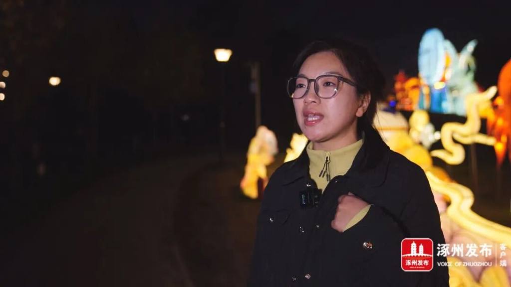 游客王雅珺硕:在十一的时候人比较多。然后就没过来看。今天开园了以后,这是第一次过来,然后看了看咱们这个灯展还是不错的。内容很新颖,也很丰富。灯光的色彩也很好。我最喜欢的就是咱们前面有展示的涿州八景,我觉得很有意义。我今天也是带着孩子过来,我一边走一边讲咱们涿州的历史,就是孩子也能了解一下吧。
