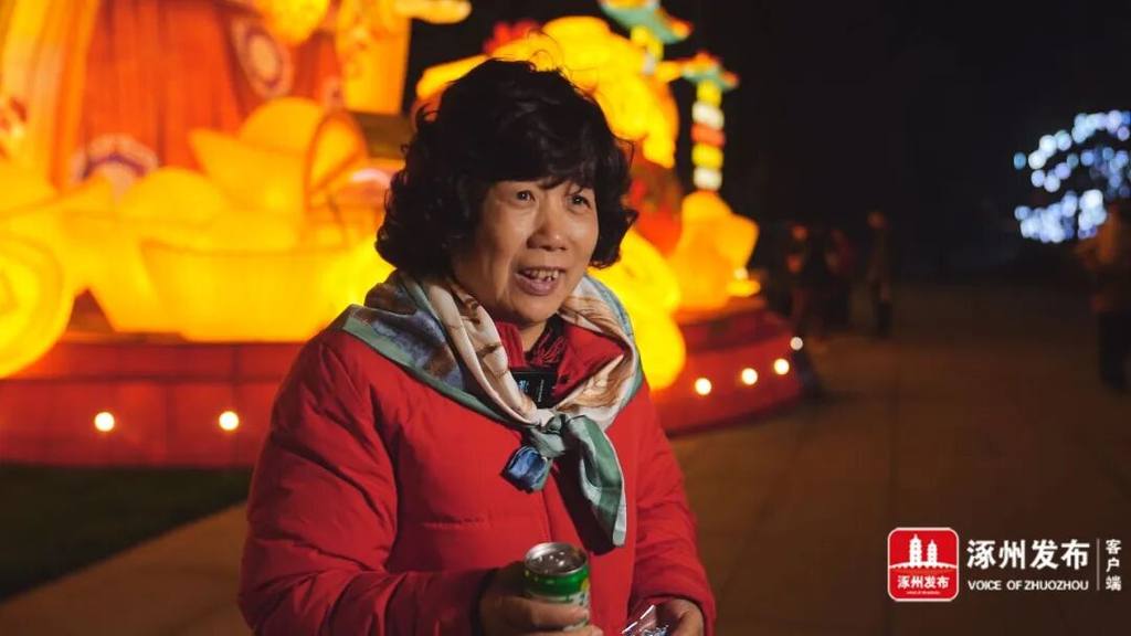 游客杨美说:我是广东来的,刚好来这边探亲,我的亲戚在涿州。听到有这个灯会我们就过来了,这个灯会很有意思。很好办的很热闹。每个点都有游戏,我们拿了很多礼物,我们很开心。