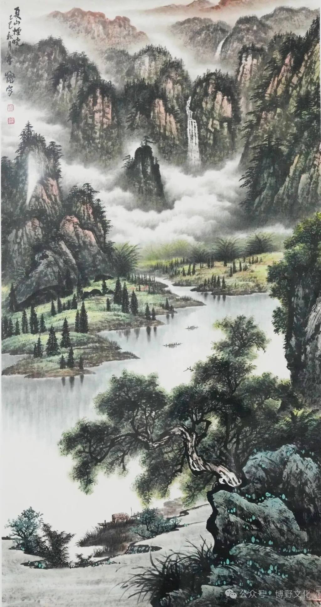 国画《夏山烟晓》 作者:李明彪