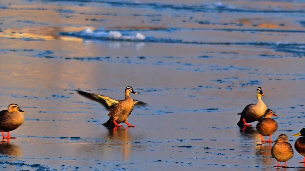 15秒看河北丨海冰如荷鸭戏冬